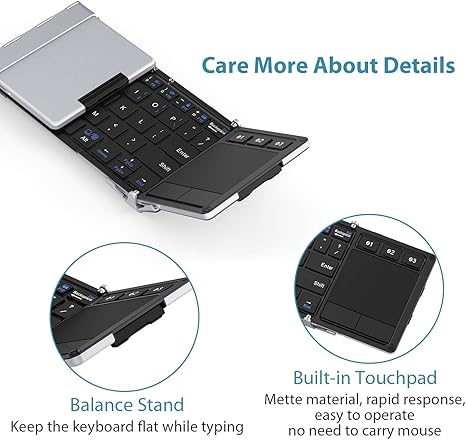 This item folding keyboard iclever bk08 bluetooth keyboard with sensitive touchpad sync up to 3 devices pocket sized tri folded fodable keyboard for ipad mac iphone android windows ios silver iclever bk05 bluetooth keyboard with 3 color backlight bluetooth 5 1 multi device foldable keyboard with aluminum alloy base for ios windows android.