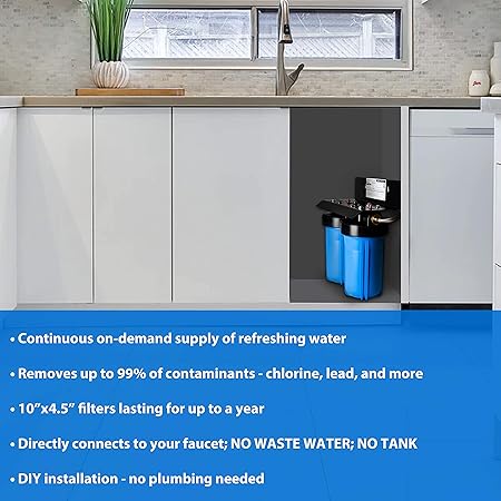Ispring Us21b Heavy Duty 2 Stage Under Sink Water Filter System With Direct Connect Hoses And Super Capacity 10 X 4 5 Cartridges Removes Chlorine Iron Lead Odor And More Amazon Com