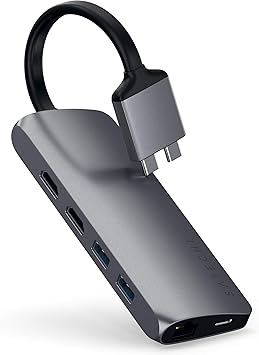 Satechi type c dual multimedia adapter with dual 4k hdmi usb c pd gigabit ethernet micro sd card readers usb 3 0 com b07rh8l9gv. Dual 4k hdmi display enjoy brilliant 4k hdmi display extended across two monitors for a stunning dual setup. Featuring a patent pending dual connector design the dual multimedia adapter includes two 4k hdmi ports usb c pd 3 0 charging gigabit ethernet micro sd card readers and usb 3 0 ports. With an elegant aluminum brushed finish and a convenient plug and play design it has never been easier to connect your perfect work space.