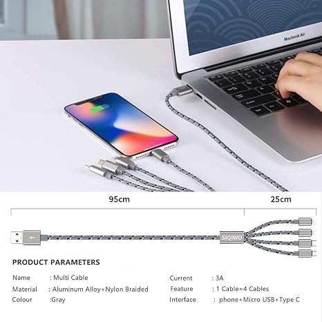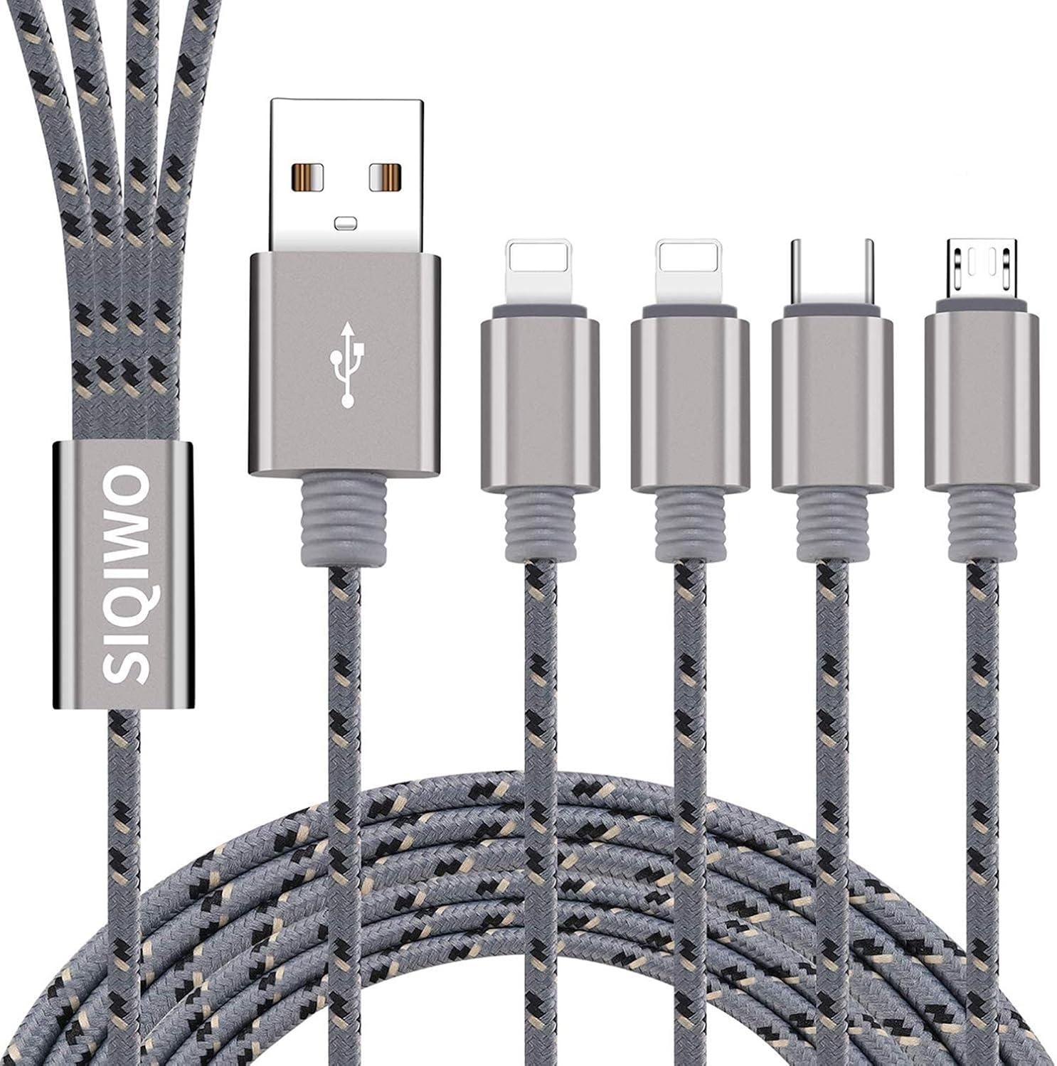 Amazon Com Siqiwo 2pack 3a Multi Usb Charger Cable 4ft 4 In 1 Fast Charging Lead Cord With Type C 2 Ip Micro Usb Port Connector Compatible Phone 12 11 Pro Xs Xr X 8 Plus