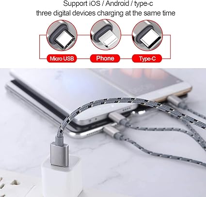 Amazon Com Rulus Multi Usb Fast Charging Cable 3a 3 In 1 Charger Cord Port With Phone Usb C Micro Usb Connector Compatible With Tablets Samsung Galaxy Huawei Lg Google Pixeland More 4ft 1 2m