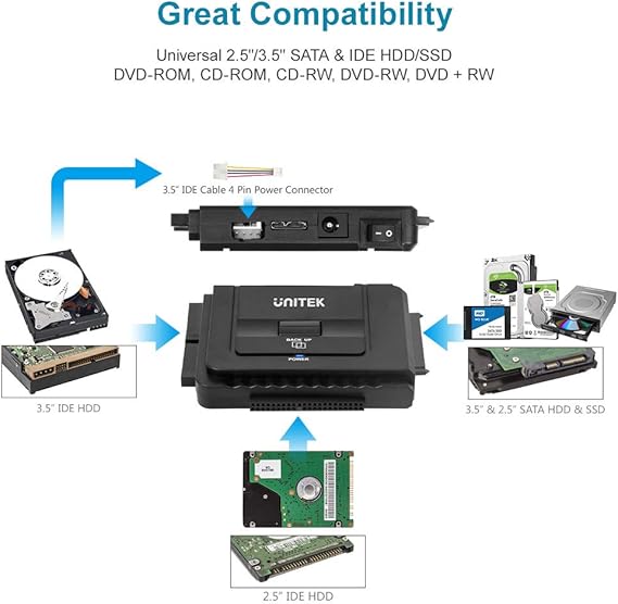 Unitek usb 3 0 to ide and sata converter external hard drive adapter kit for universal 2 5 3 5 hdd ssd hard drive disk on b00ehdtrj6. Popularity 1 030 views 1 7 views per day 591 days on ebay. Y 3322unitek usb hard drive adapter usb 3 0 to ide sata converter external hard drive adapter kit for universal 2 5 3 5 hdd ssd hard d. Usb 3 0 to ide sata converter external hard drive adapter kit for universal 2 5 3 5 hdd ssd hard drive disk one touch backup function and restore software 12v 2a power adapter included.