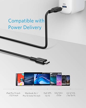 It s also blisteringly fast the powerline iii plus supports 60w power delivery charging. Anker usb c cable powerline usb 3 0 to usb c charger cable 10ft with 56k ohm pull up resistor for samsung galaxy note 8 s8 s8 s9 oculus quest macboo. Buy anker powerline ii usb c to usb c 2 0 cable 6ft 1 8m durable charging cable usb if certified for galaxy s8 s8 s9 s10 google pixel nexus 6p huawei matebook macbook ipad pro 2018 more black at amazon uk.