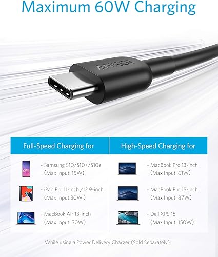 Buy usb c to usb c cable anker powerline ii usb c to usb c 2 0 cord 6ft usb if certified power delivery pd charging for macbook matebook ipad pro 2020 chromebook switch and more. Join the 50 million powered by our leading technology. Also assuming i buy a compatible anker charger with max output what s the difference in charging speed between these two cables.