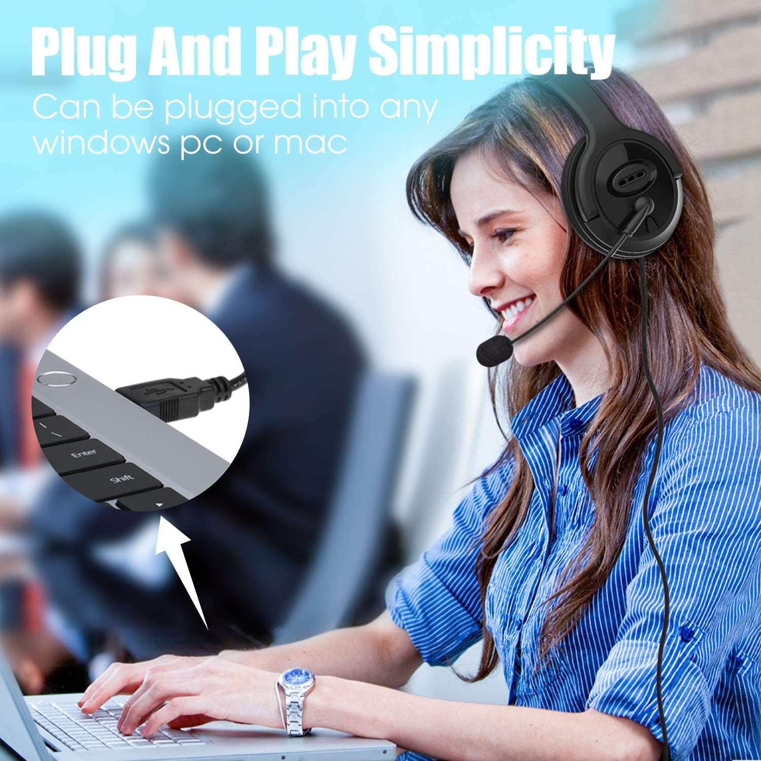 Amazon Com Vtin Pro Usb Headsets 3 5mm Stereo Computer Headset With Flexible Noise Canceling Microphone Comfort Fit On Ear Wired Business Headsets For Skype Call Center Pc School Computers Accessories