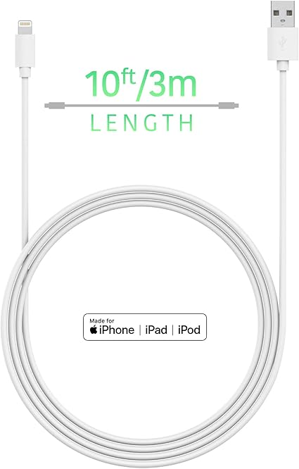 Amazon Com Talkworks Iphone Charger Lightning Cable 10ft Long Heavy Duty Cord Mfi Certified For Apple Iphone 12 12 Pro Max 12 Mini 11 11 Pro Max Xr Xs Max X 8 7 6 5 Se Ipad White