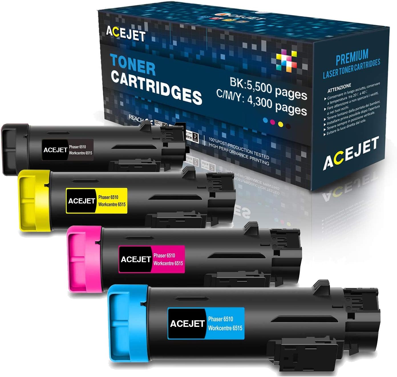 Amazon Com Acejet Compatible 6510 6515 Toner Cartridge Replacement For Xerox Phaser 6510 Toner For 6510dni 6510dn 6510n Workcentre 6515 6515dni 6515dn 6515n 4 Packs 1 Black 1 Cyan 1 Magenta 1 Yellow Office Products