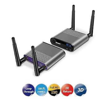J tech digital hdbitt dual antenna 1x2 wireless transmitter hdmi extender is the most powerful wireless transmitter hdmi extender on amazon. It does not require line of sight placement and has no problems receiving signals through walls ceilings and floors.