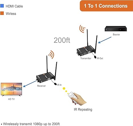 It lets you extend an hdmi audio video signal wirelessly up to 660 ft 200m using latest technology. Amazing video quality up to 200 ft away. Amazing video quality up to 660 ft away.