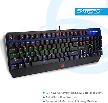 Amazon Com Sarepo 104 Keys Mechanical Gaming Keyboard Mj47 Rgb Led Backlight Blacklit Blue Switches Mechanical Keyboard With 26 Anti Ghosting Keys For Mac And Windows 12 Months Quality Warranty Computers Accessories