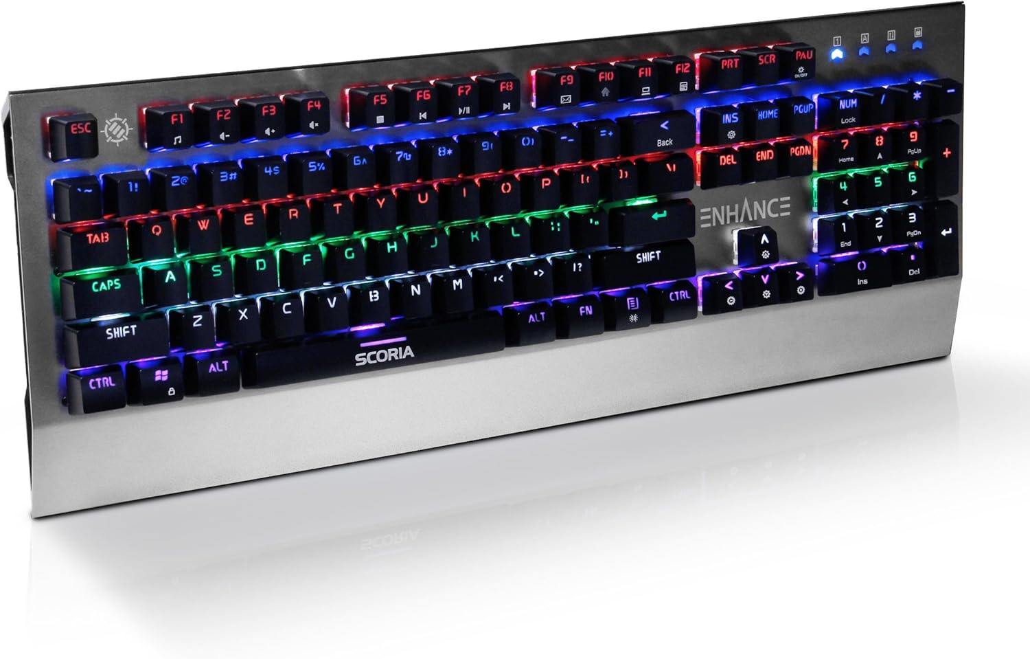 Amazon Com Enhance Led Mechanical Gaming Keyboard Red Switches 104 Backlit Keys Pro Series Fps Moba Brushed Aluminum Metal Anti Ghosting N Key Rollover 10 Lighting Modes Scoria Tournament Keyboard Computers Accessories