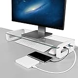 Get an extra shelf for your laptop computer gaming console home audio equipment or anything else that needs a flat surface. Standard size and 4 usb ports 21 3x7 9x3 5 inch and the stand features 4 usb ports 3 usb 3 0 hub ports and 1 charging port for your hard devices mobile phones ipad kindle and other devices charging speed comparable to the original. Succinct glass monitor stand each port can be quickly charged with a maximum of 5v 2 4a and transfer speed is up to 5gbps.