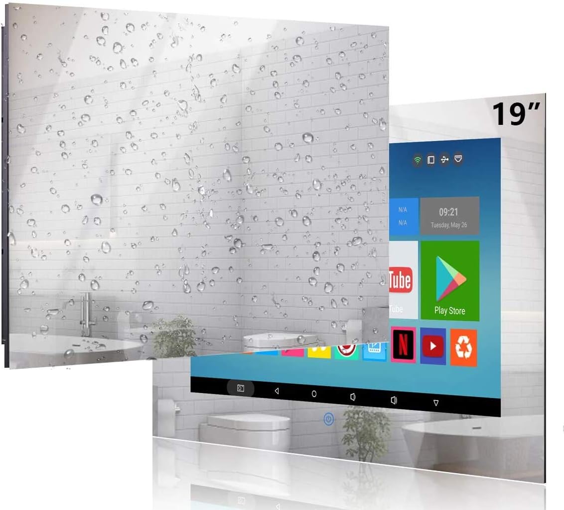 Amazon Com Haocrown Small 19 Smart Mirror Tv For Bathroom Shower Hot Tub Kitchen Ip 66 Waterproof Hd Android 10 0 Television Built In Wi Fi Bluetooth Mirror Frame Electronics