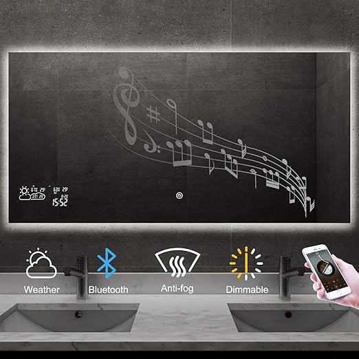 Amazon Com Byecold Smart Mirror Bathroom With Bluetooth Vanity Adjustable Led Lighted Bathroom Mirror With Weather Forecast Anti Fog Wall Mirror For Make Up Horizontal 47 2 W X 23 6 H Home Kitchen